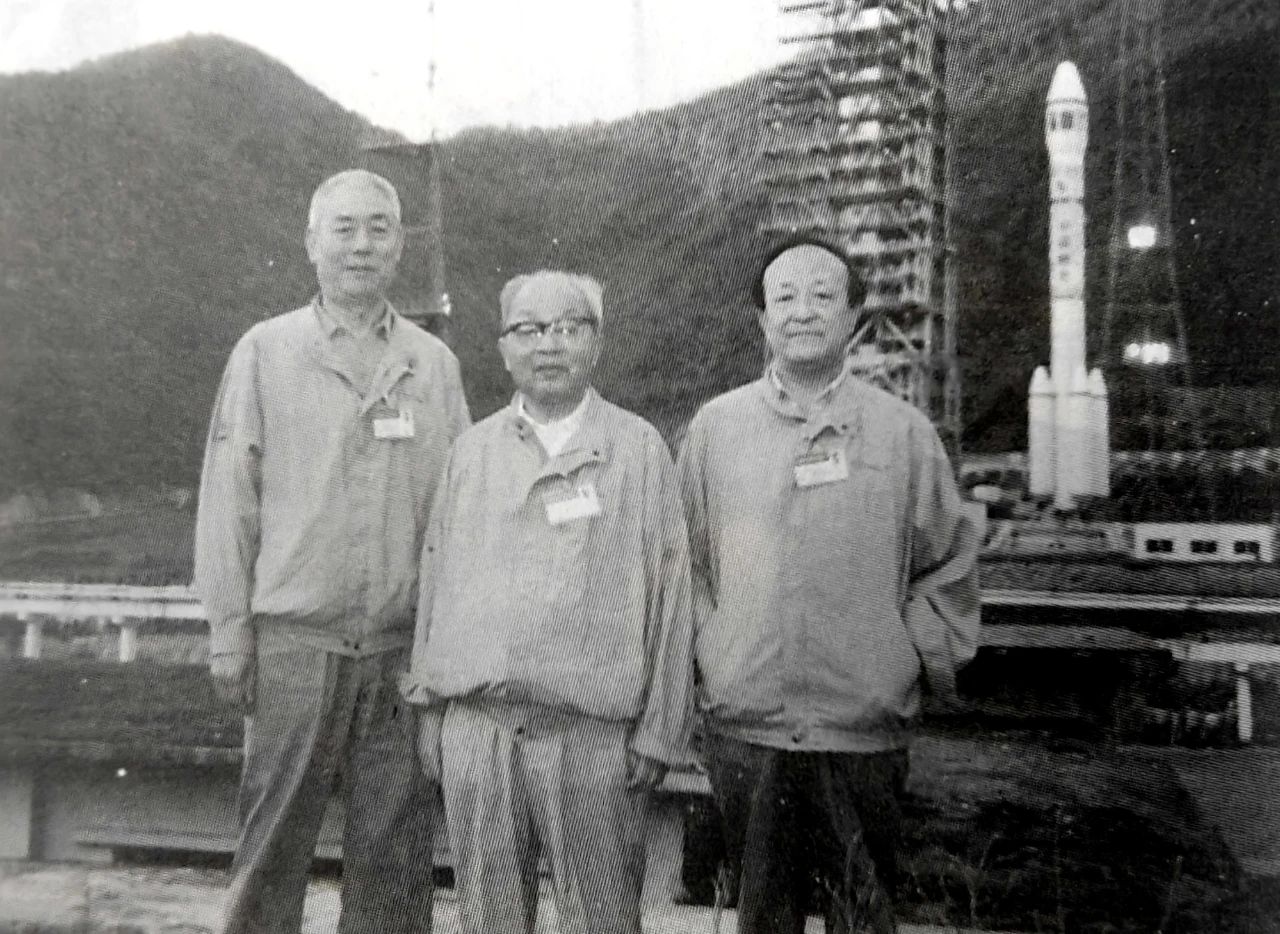 1992年8月9日,屠守鍔(中)在長征二號E運載火箭發射現場