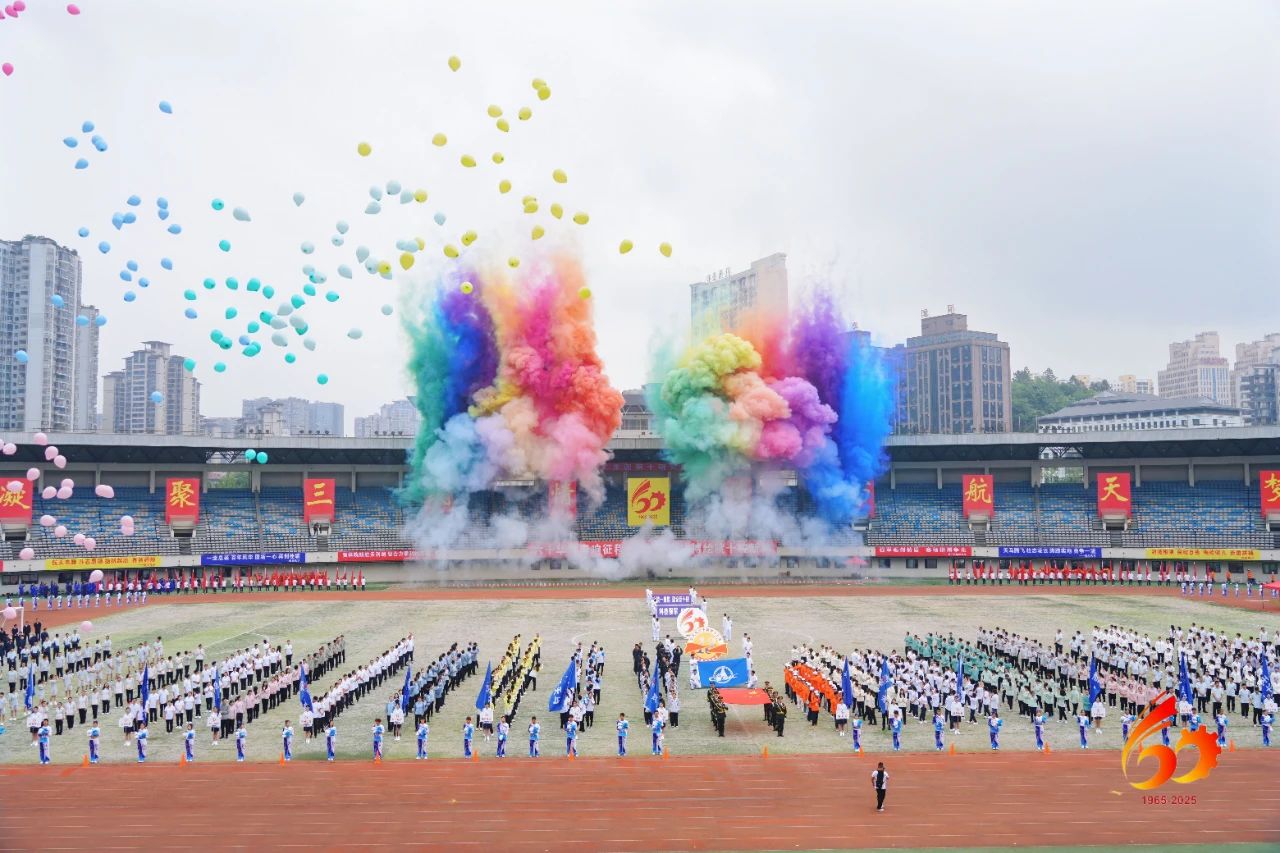 賽前,運動員代表、裁判員代表分別宣誓。由800人組成的廣播體操表演整齊劃一、舒展有力。而由十院100名退休職工帶來的太極八段錦表演則剛柔相濟,集形與神于一體;兩側的舞龍更是靜中有動,傳統(tǒng)文化結合的節(jié)目贏得看臺上陣陣喝彩。貴州航天工業(yè)學校帶來的團體操表演《旗風航帆》氣勢恢宏,高燃的音樂更是將全場氛圍引向高潮。